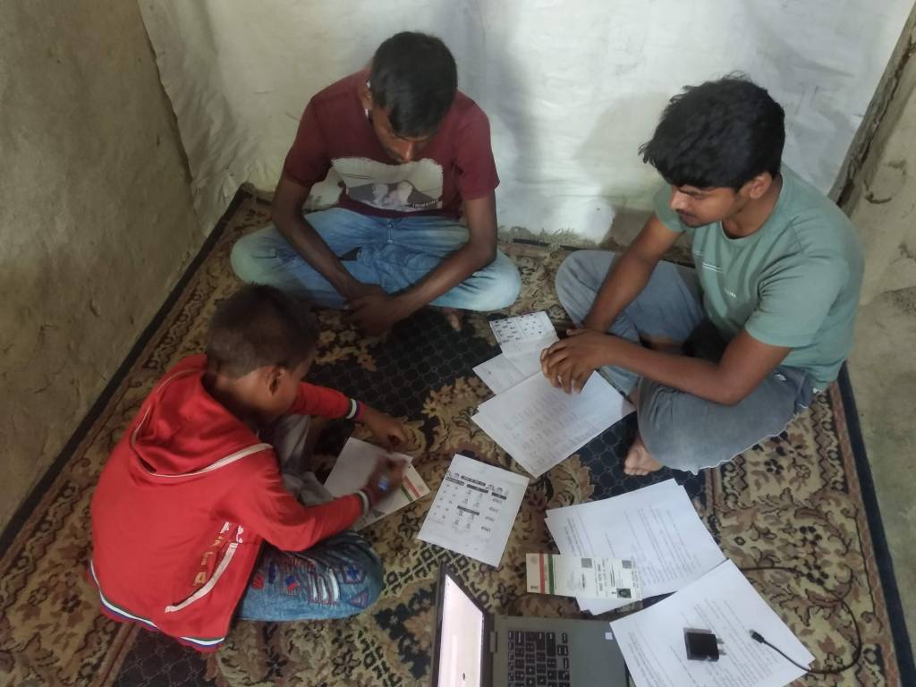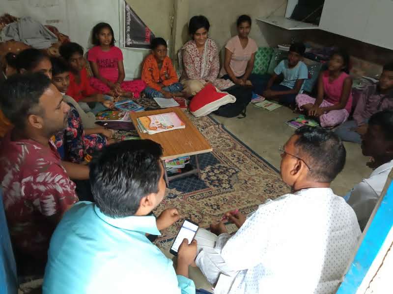 GROUP PHOTO WITH BHANWAR JI BEFORE HE LEFT PARAS BANJARA AND BHANWAR MEGHWANSHI, INTERACT WITH CHILDREN SHARING WITH THEM THEIR OWN CHALLENGES IN ACCESSING FORMAL EDUCATION PARAS LEFT THIS SONG WITH THE CHILDREN, IN THEIR HEARTS AND MINDS YOUNGEST TEAM MEMBERS AT WORKSANGEETA BRINGING THE WALL DOWN SHRAMDAAN TO MAKE THE COMPUTER ROOM