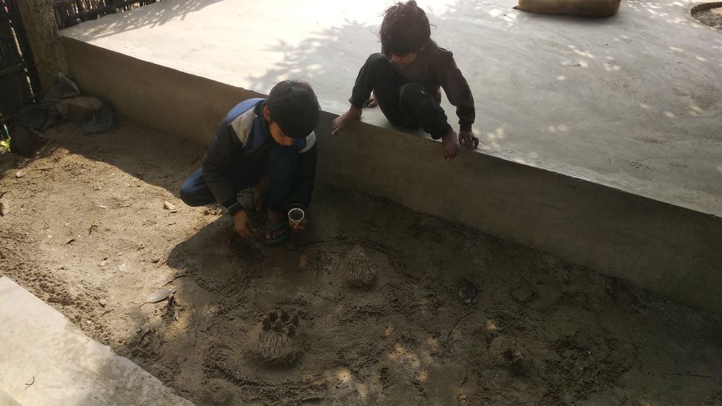 In our attempts at bringing the infrastructure up to the mark, we made an accidental sand pit, out of our centre. As the workers dug the centre land to make a septic tank, what came out was very sandy soil. We decided to layer the centre with this sandy soil during our “sharmdan”. Children made the sandy soil their free play sand pit 🙂