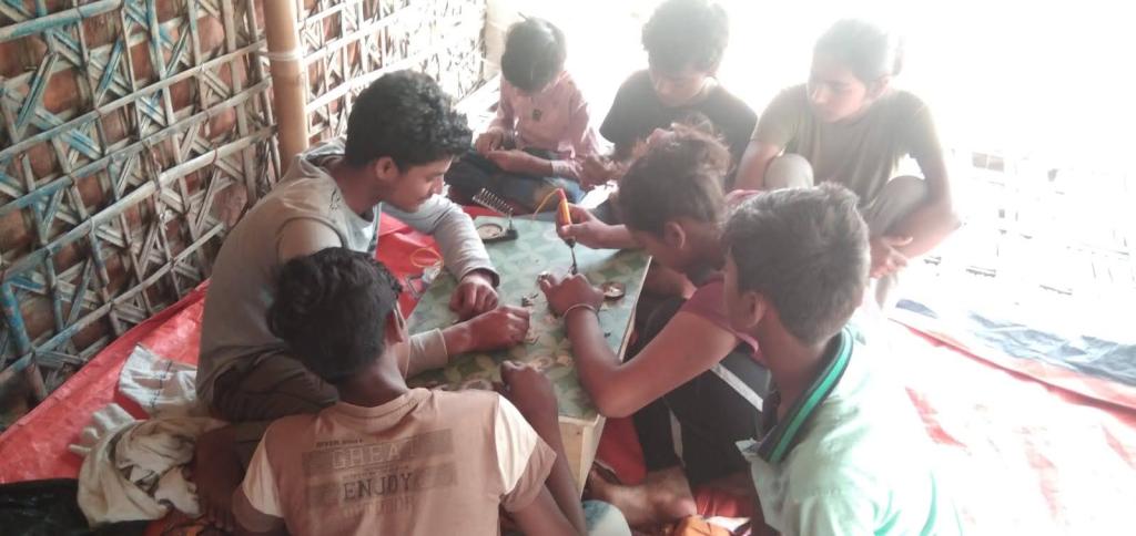 While studying about circuits and electricity in our senior class, we looked at ways of connecting this to our day to day life. Around this time, we found out that Adil, a youth volunteer who used to visit the centre, knew how to fix LED bulbs, so we requested him to do a workshop with our children. Adil in action …