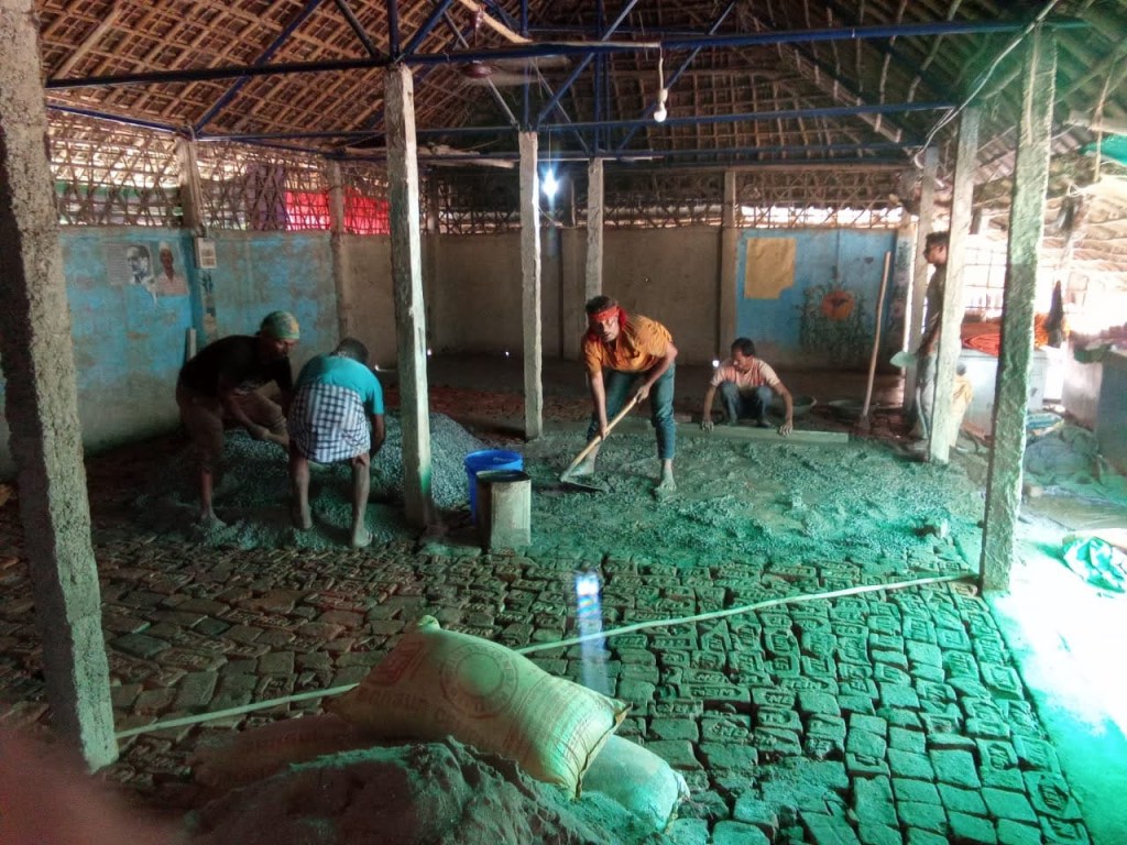 The Hall floor was finally made pakka, as it will now be used as a dormitory for boys, along with becoming a space for multiple classrooms A new block of toilets as bathrooms being built as we plan to increase from 22 to 30+ students