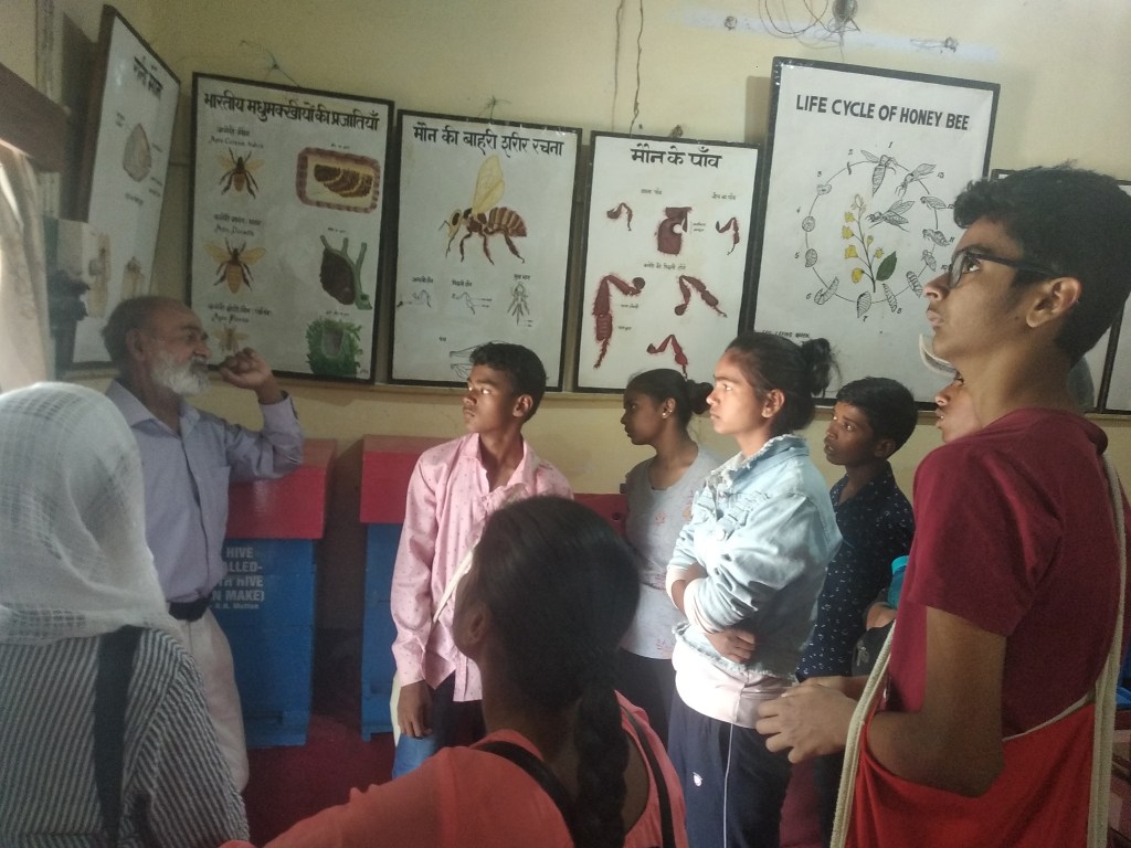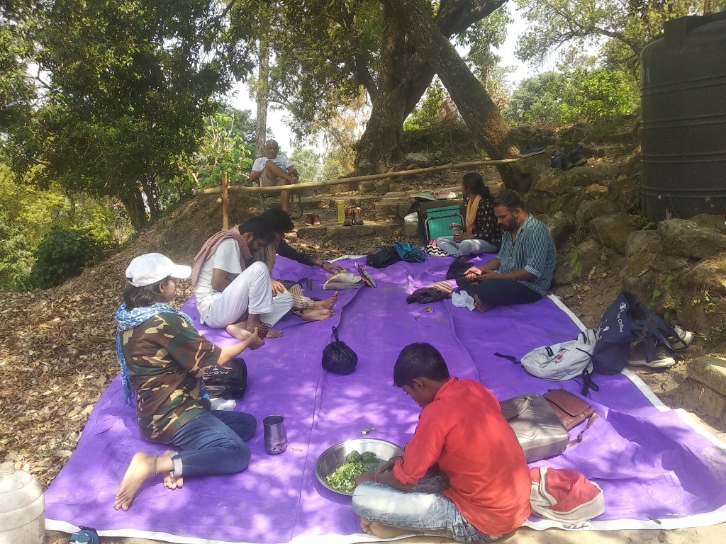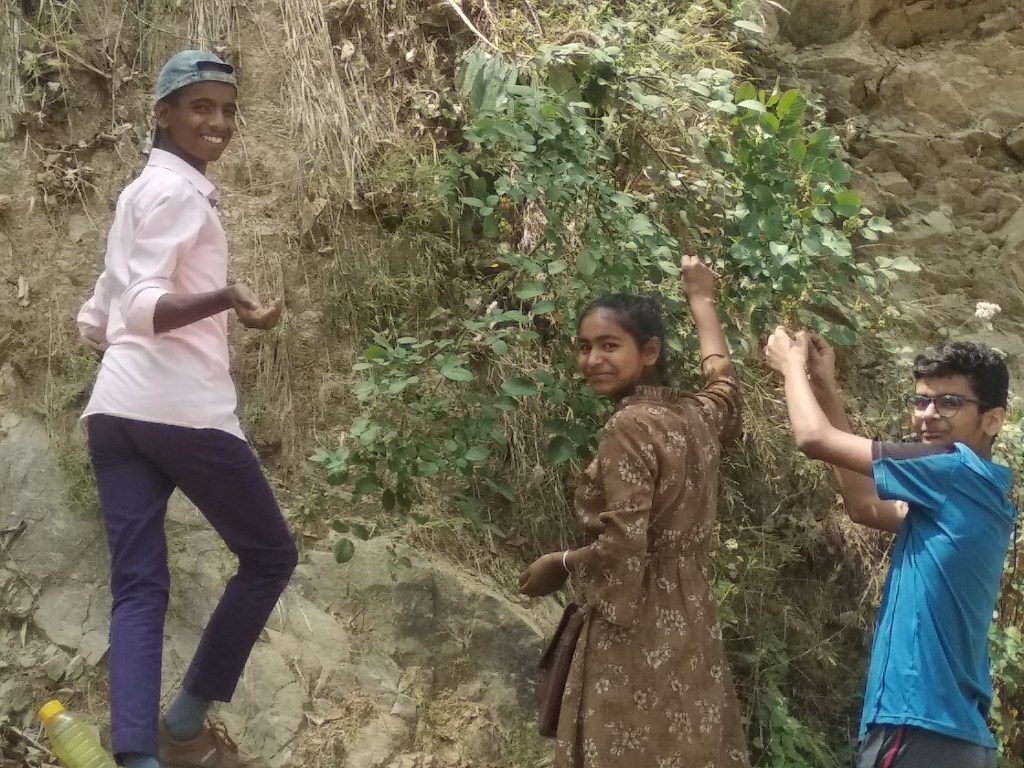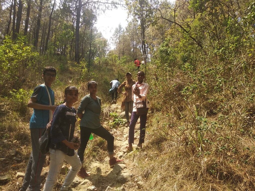 Plucking Hisalu (a local berry ont he way to a jungle picnin)We are tired and we like the view!Climbing on At the Haunted House!The Warwick residence The Jungle Party was a fully eco friendly affair and we got the most fabulous veg biryani, with eevryone’s combined labour. As we reached the happy children’s library, we stepped out again into the village, with one local student to accompany us … At the library, were beautiful welcome messages, in the shadow of which we got together …… in groups bringing together the uttarakhand village with our bihar villagesDoin the traditional choliya dance with all children slowly joining in. Jaya di and Abhimanyu chat, as Atul ji watches. jaya di and Atul ji are founders of the Happy children’s LibraryAt the Bee keeping centre in Jeolikote Entering the Mushroom harvesting centre Mushroom Harvesting, a interesting interactive learning … growing mushrooms Evening film at camp sparrow… Where are we headed? Plastics, biodiversity, environmental conservation, all in one.