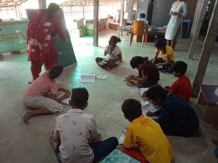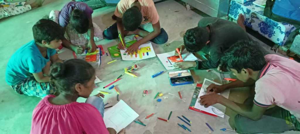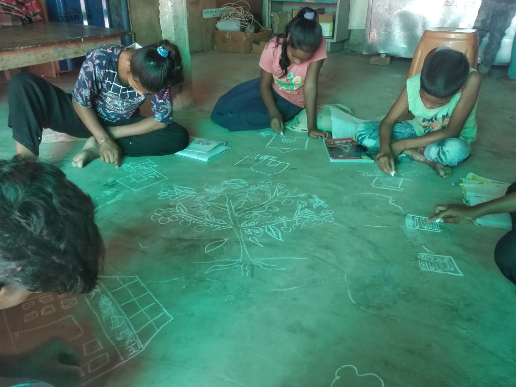 Unlike conventional classroom spaces, children at Jeevanshala are free to use the floor for various activities. This helps in expressing themselves not just through writing or drawing, but also through their body language.