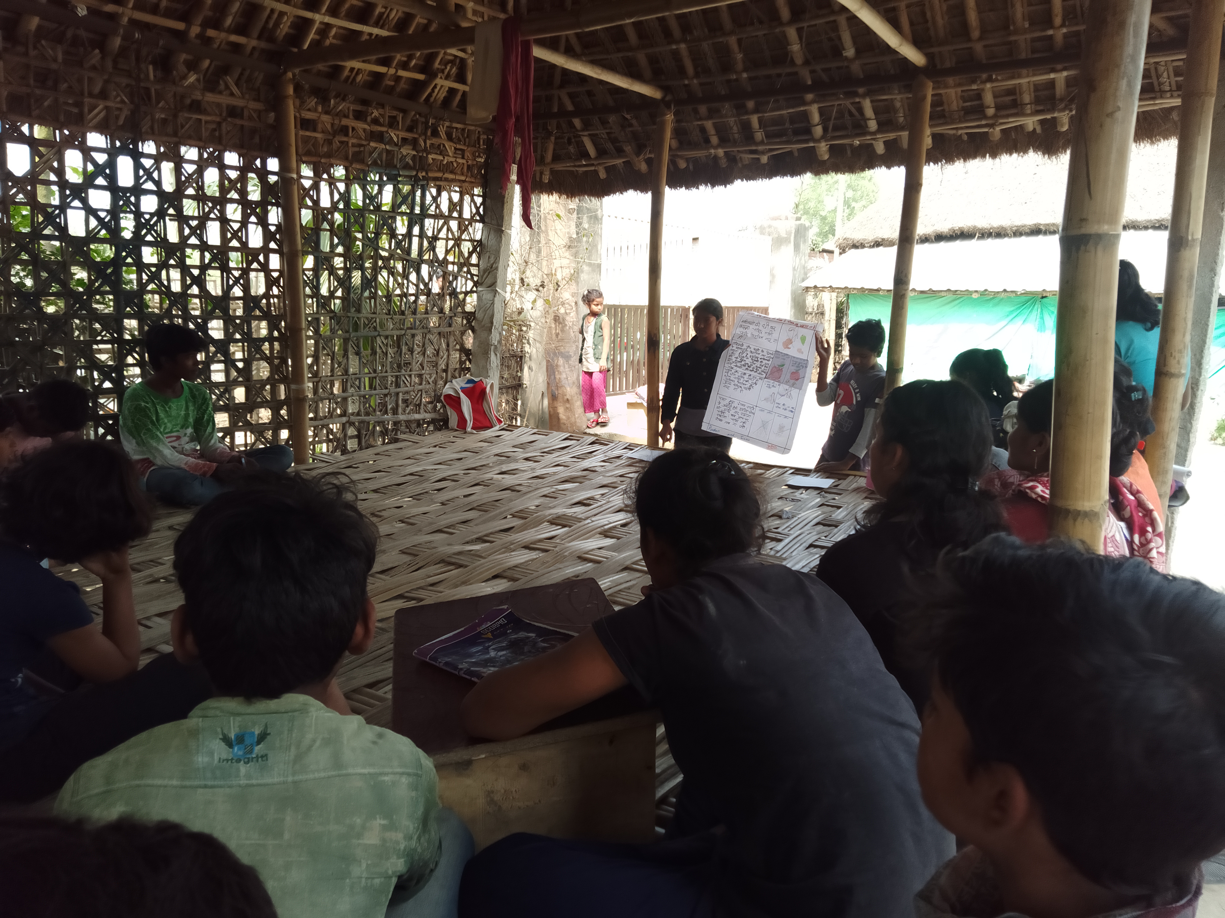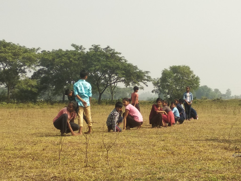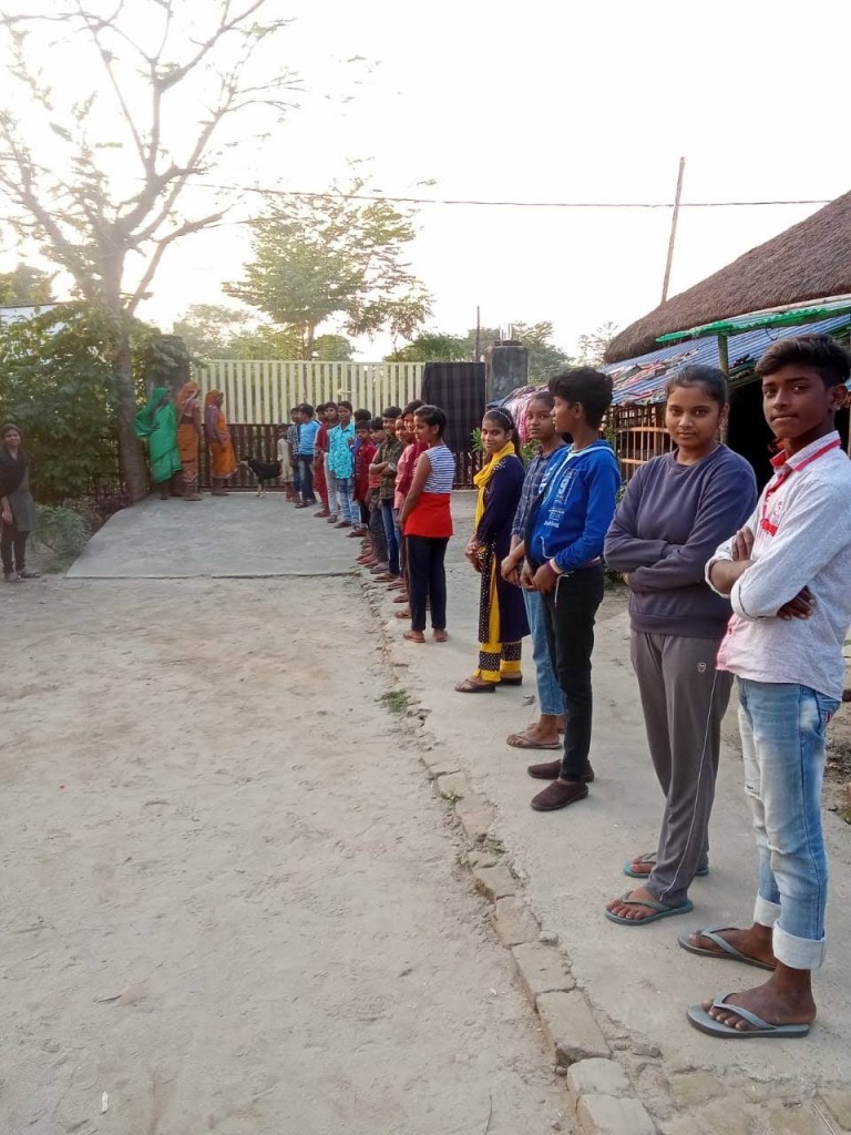 About 60 students of classes V and VI, from the neighbouring private school Araria Public School (APS) came over and the jeevanshala students did their first public show for an outside audience, but in their home turf 🙂