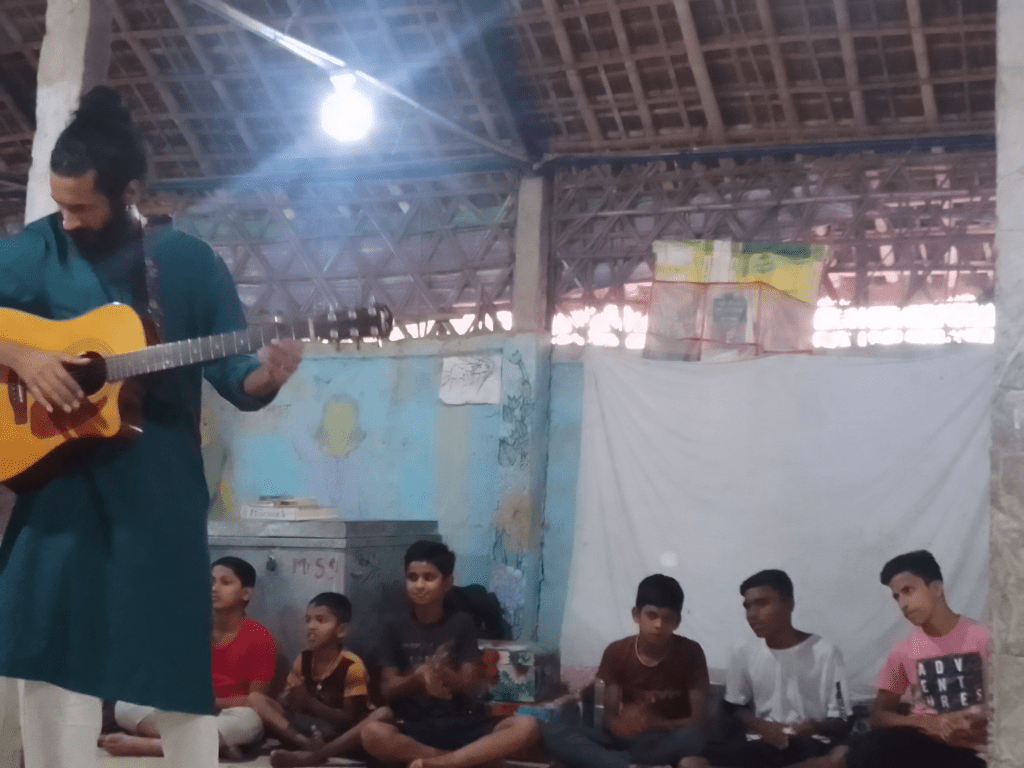 Sumant strums the guitar to ‘halke gadi hako’, at the interaction with the children in the jeevanshala