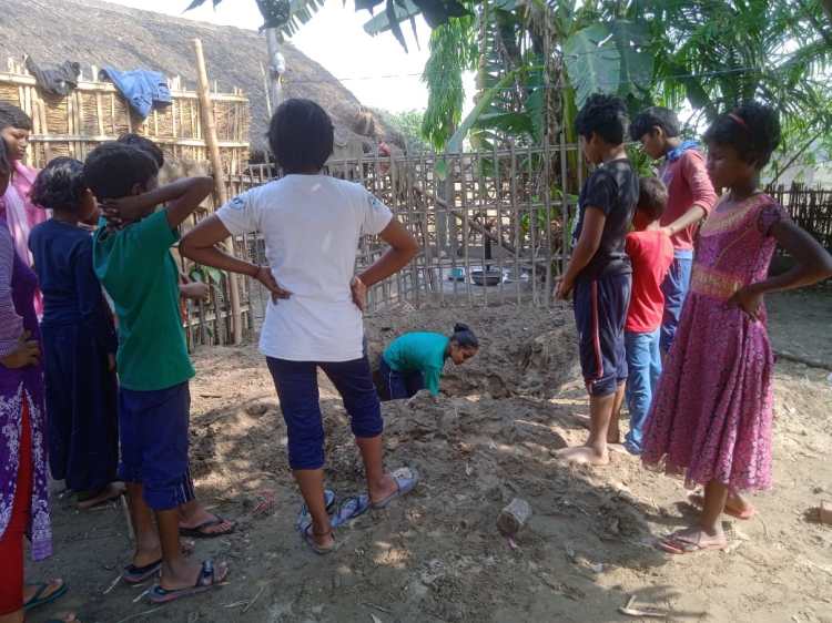 It is not common for women to yield tools like the spade, but happy that early enough children at the jeevanshala learn there is no taboo working together!