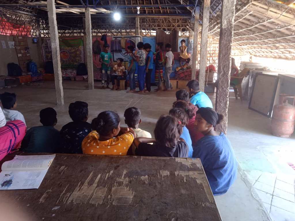 After a break when students come back the jeevanshala, usually the saturday workshop uses theatre to unwind and readjust to the jeevanshala, which is now home for the children for the coming semester. These saturday workshops in May focused on bullying, education and health.