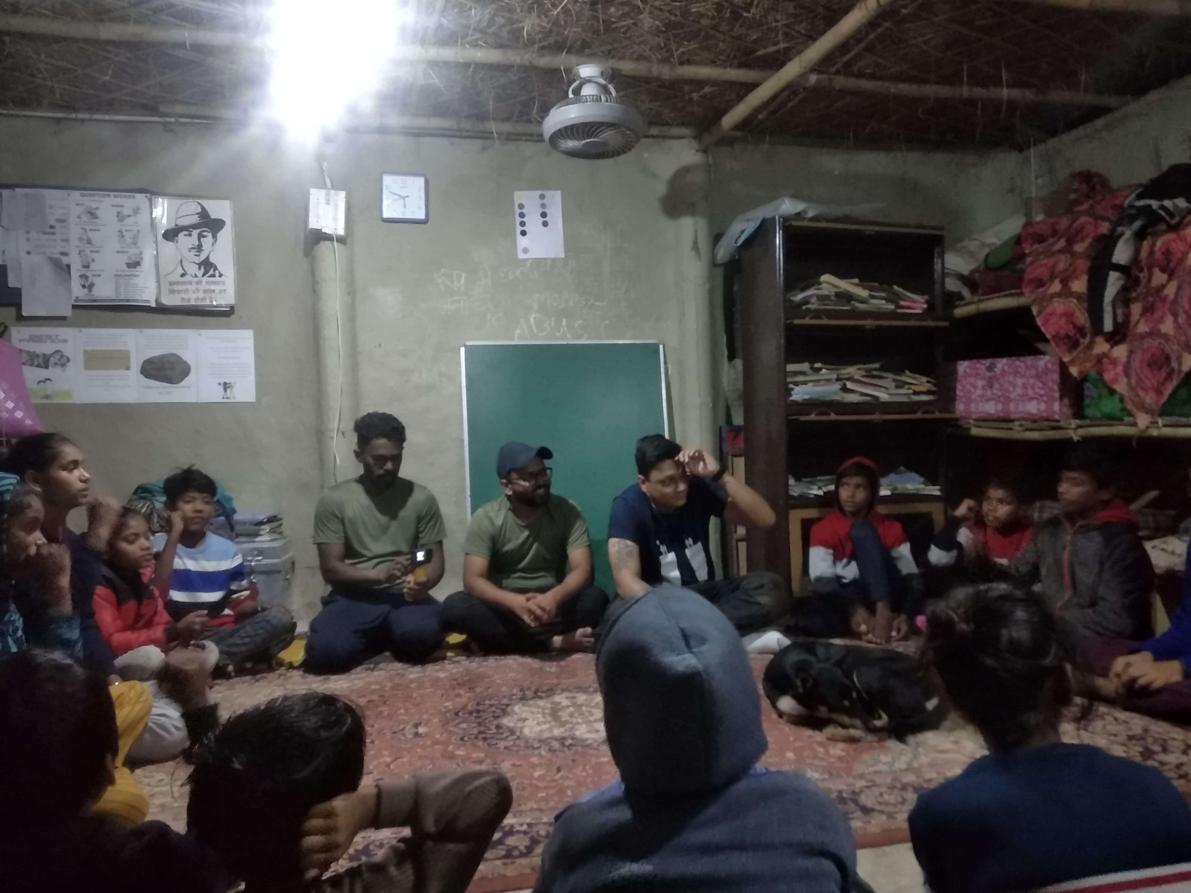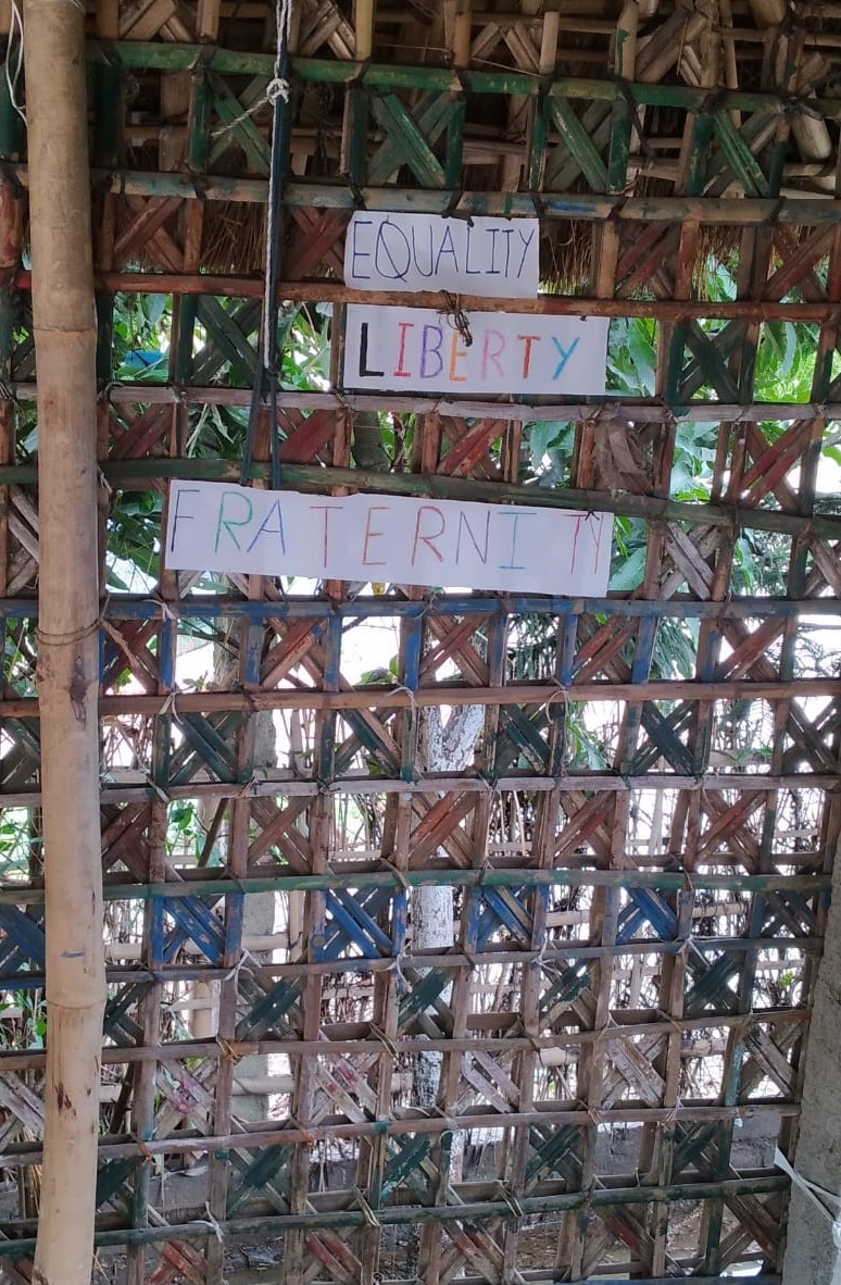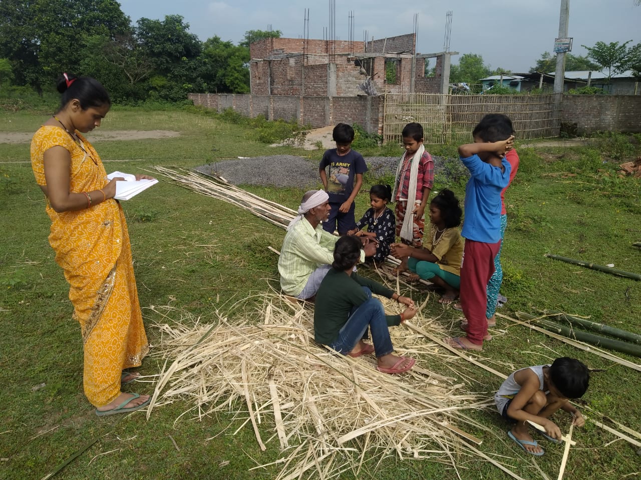 Learning from our local context – Sangeeta facilitates a conversation with Arun ji, helping children to learn about bamboo as a construction material