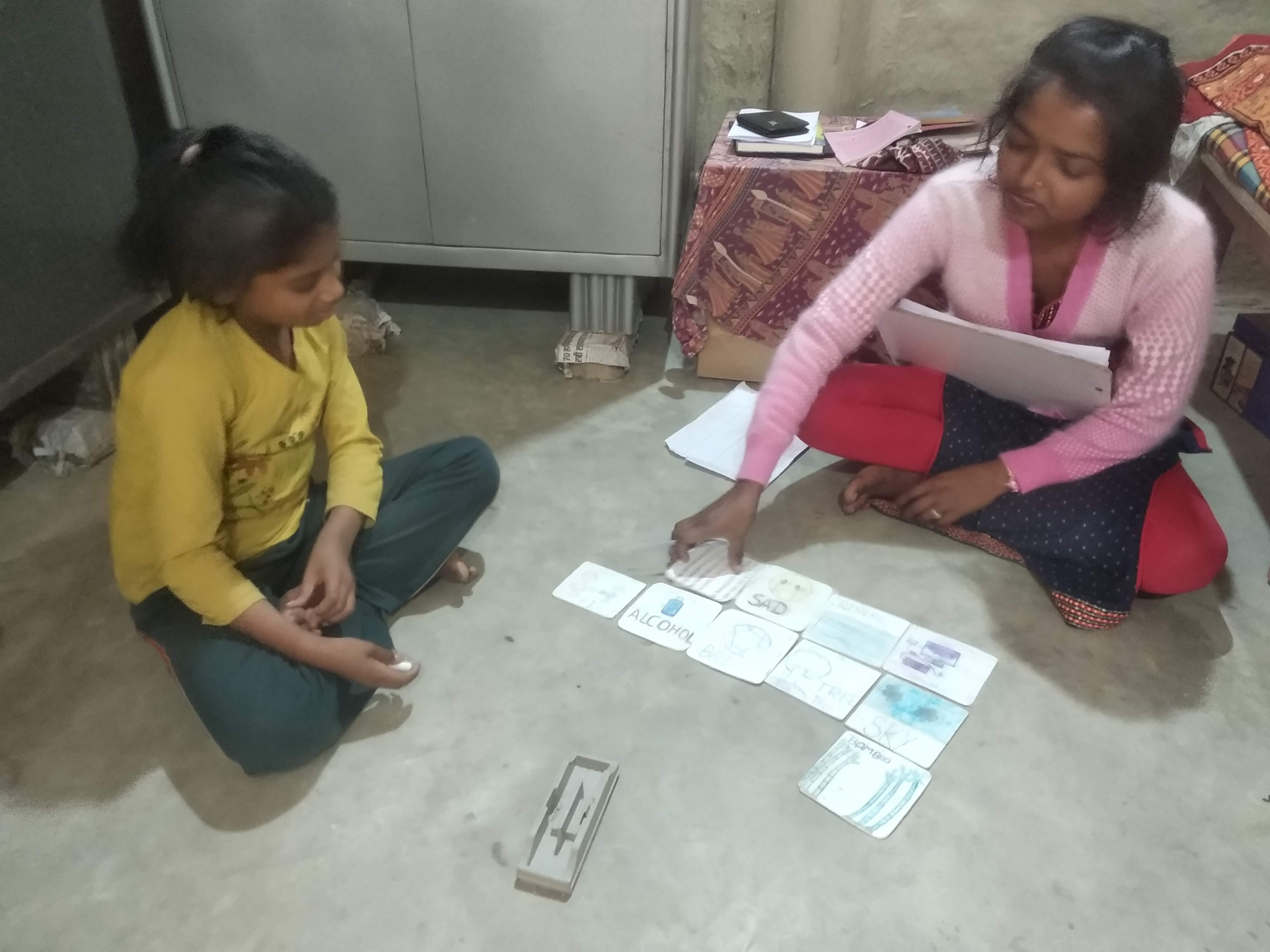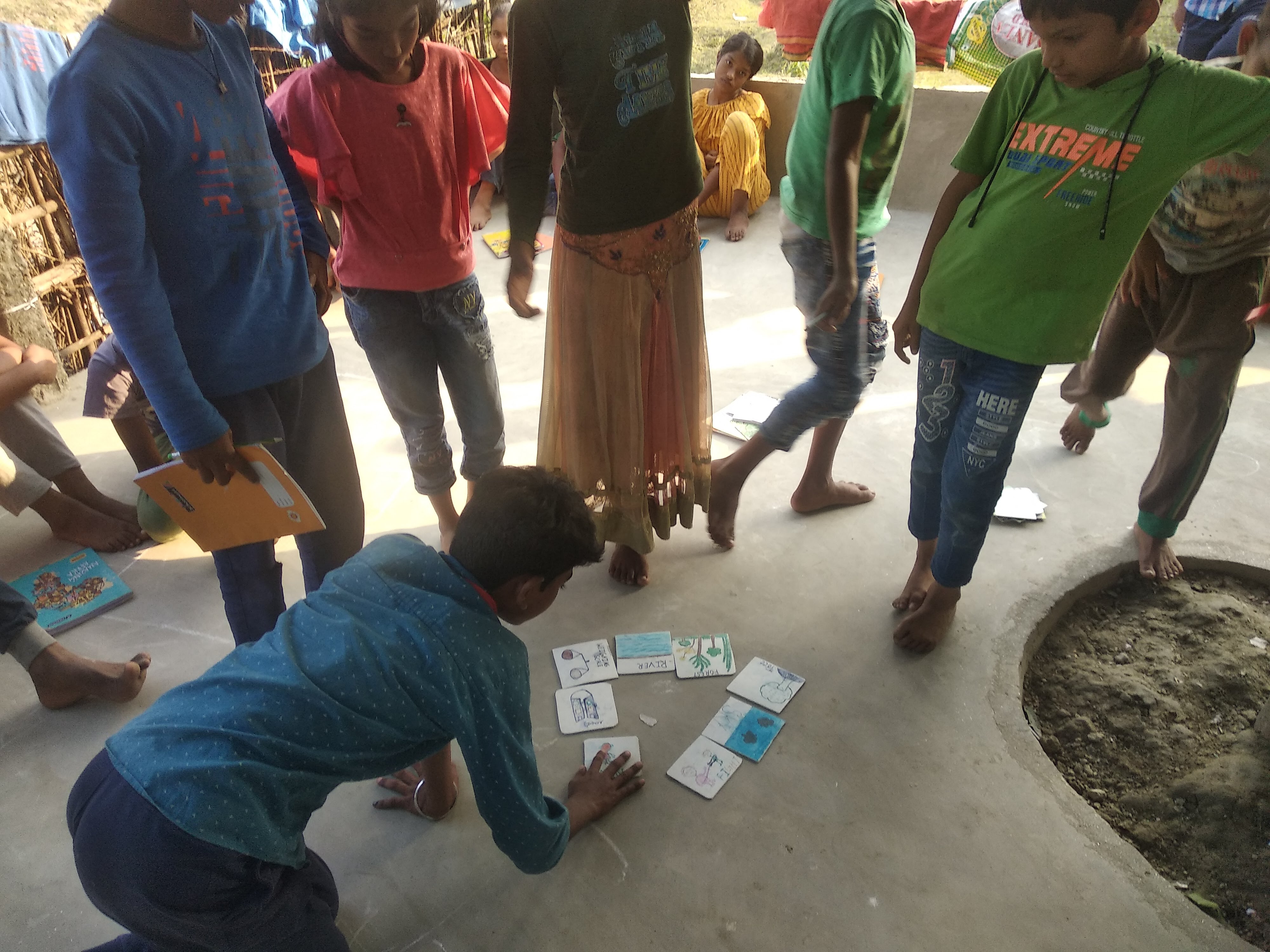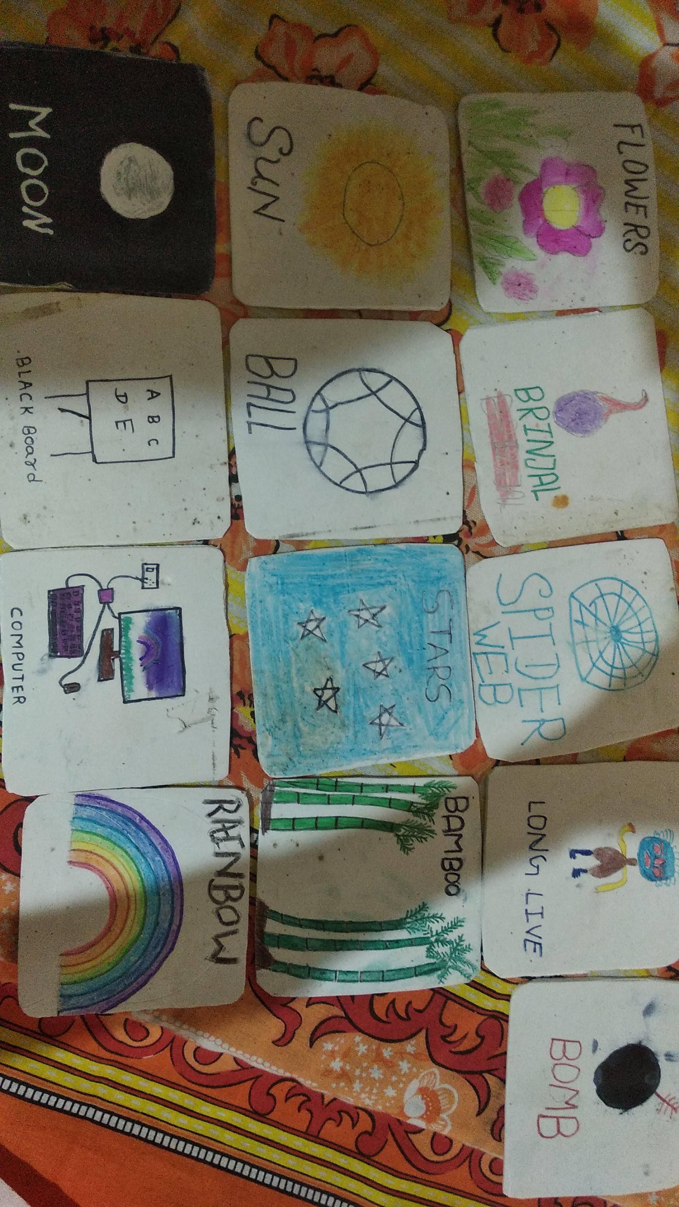 Building our english vocabulary – Cards prepared by senior children, used as learning materials for younger children