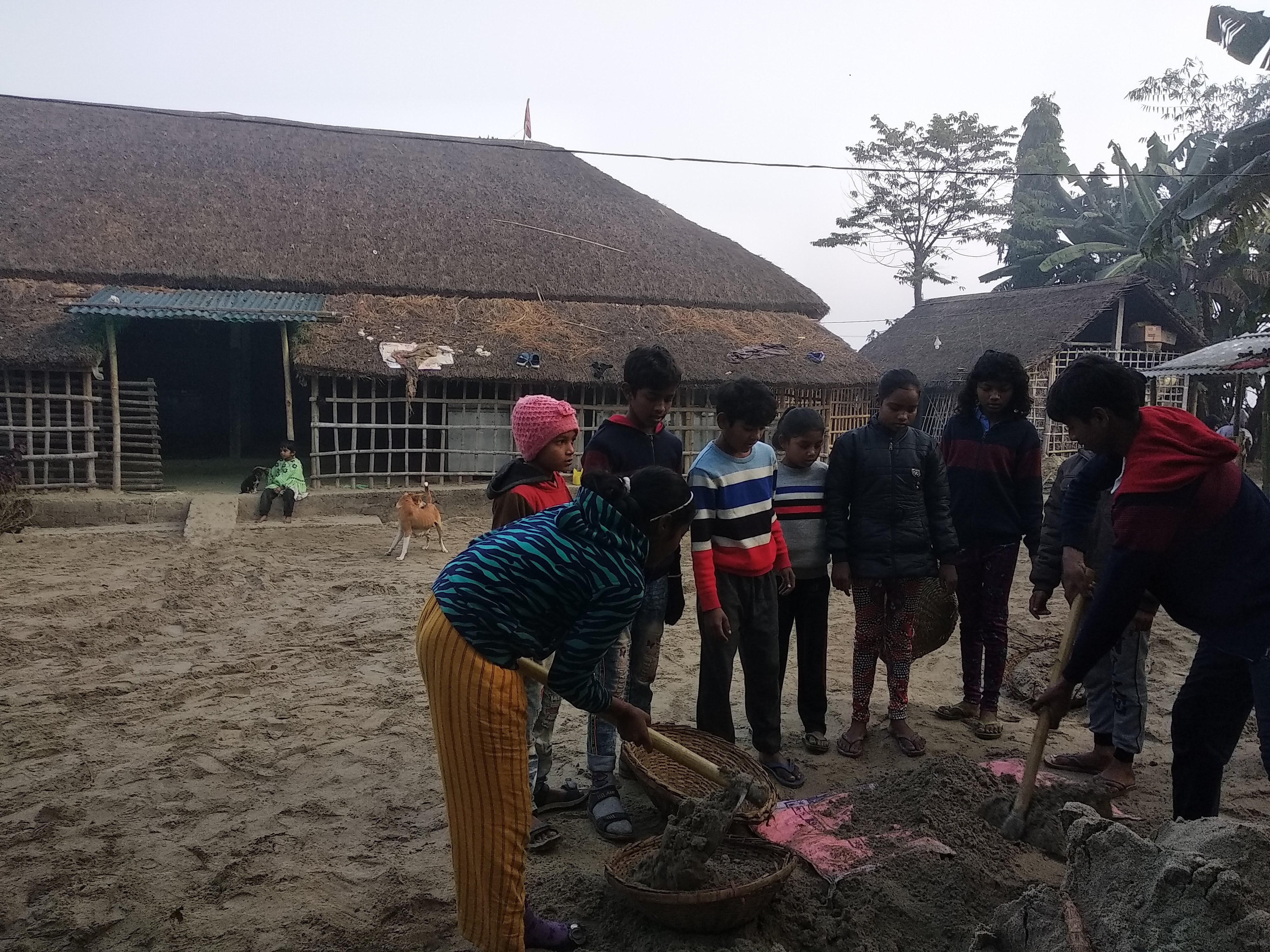 shramdaan – girls learn to also take charge of the spade along with the boys